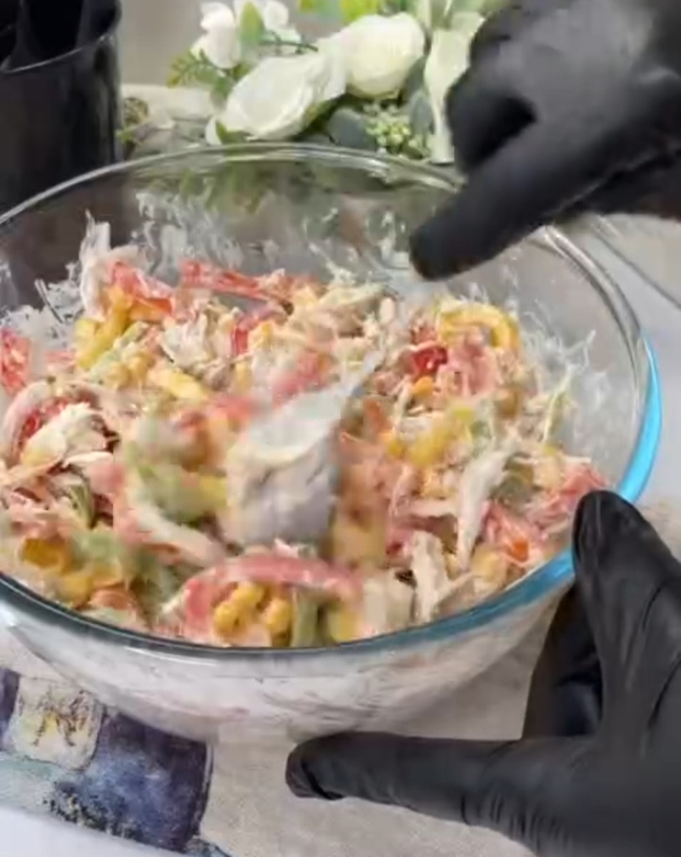 5. В глубокой ёмкости соедините все ингредиенты и аккуратно перемешайте.