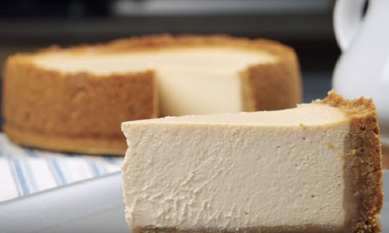 Полученную начинку помещают на остывшую основу и отправляют в духовку. Запекают при 160 градусах в течение 90 минут, поместив на дно духовки емкость с водой для поддержания нежной текстуры.