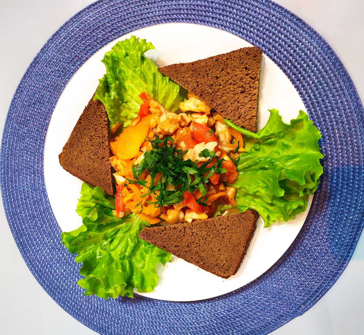 Готовое блюдо подать на листьях салата с кусочком бородинского хлеба. Приятного аппетита и пусть ваш завтрак будет таким же легким, как весенний день!
