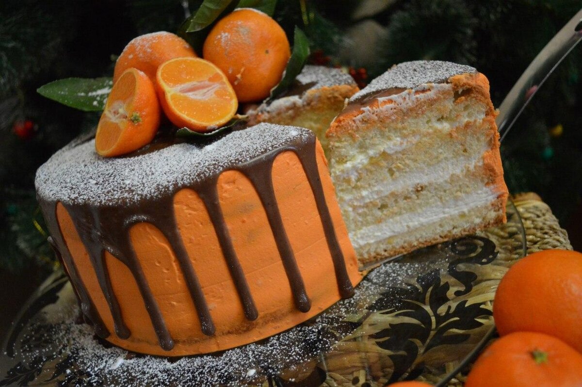 Этот вкусный торт станет настоящим украшением любого стола. Сочетание нежного бисквита, ароматного мандаринового курда и легкого крема делает его идеальным выбором для особых моментов.
