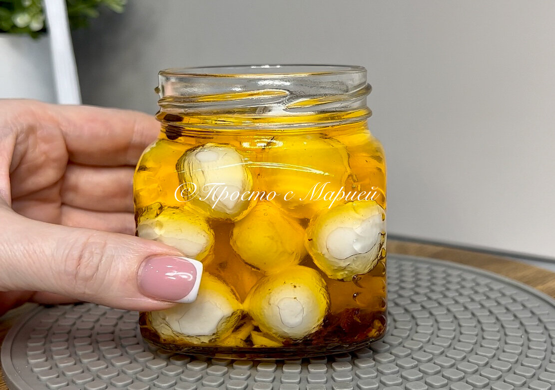 После этого следует влить горячее масло в банку, чтобы специи полностью раскрыли свой вкус, и оставить остывать. Теперь пришло время добавить в баночку шарики моцареллы, после чего её необходимо закрыть крышкой и убрать в холодильник на двое суток. В этом случае сыр и масло впитают друг друга и станут настоящим лакомством.