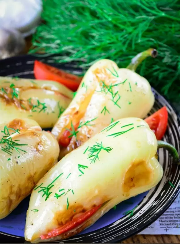 Это аппетитное блюдо подходит как для веганской кухни, так и для постного рациона. Сладкий болгарский перец, нафаршированный сочными помидорами и чесноком, станет отличной закуской или отдельным обедом. Порадуйте своих близких восхитительным ароматом и легкостью приготовления!