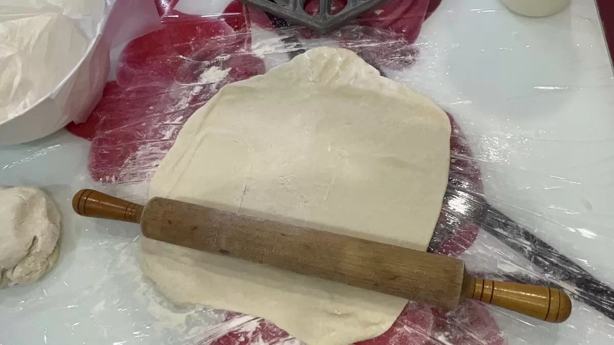 Смешайте яйца с водой и солью, а затем постепенно добавляйте муку, замешивая тесто до тех пор, пока оно не станет эластичным и не перестанет прилипать к рукам. Оберните тесто пленкой и дайте ему отдохнуть в теплом месте в течение 30 минут.