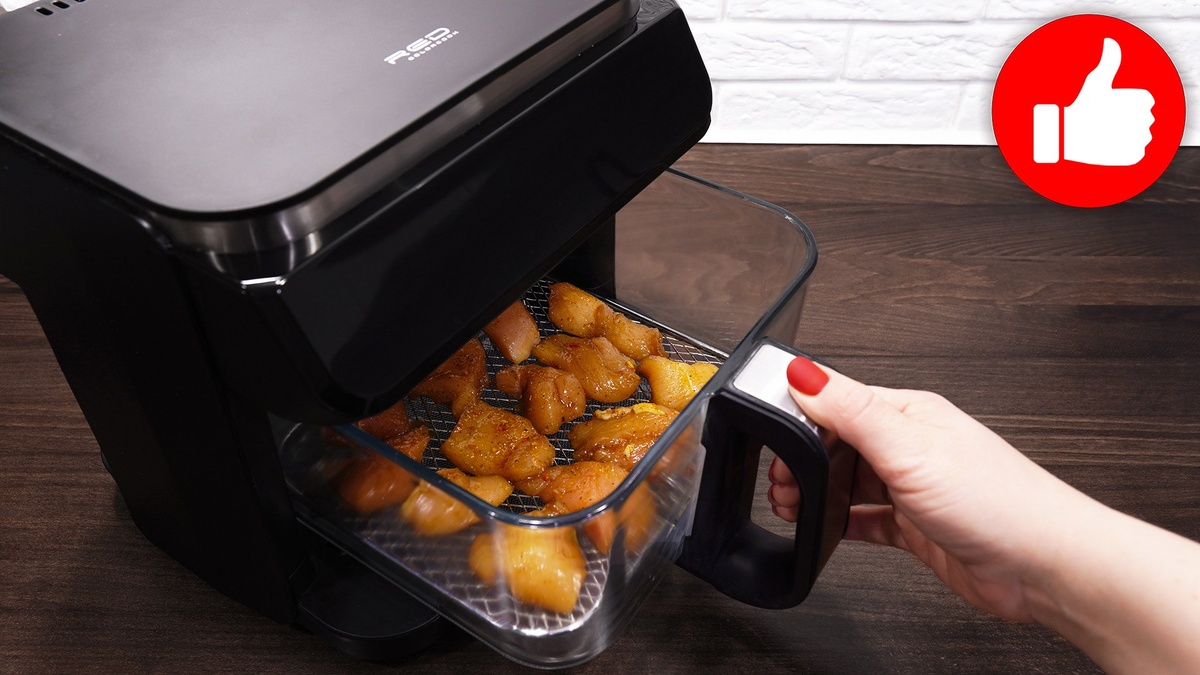 2. После маринования выложить курицу на нижнюю решетку аэрогриля в один слой, не смазывая ее. Включить режим "Мультиповар" на 190°C и готовить в течение 16 минут. Для следующей партии время приготовления сократится до 14 минут, так как аэрогриль уже нагрет.