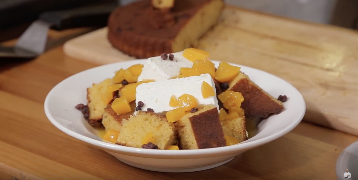 Нежный, ароматный и мягкий персиковый бисквит готов. Подавайте его сразу, чтобы наслаждаться уникальным сочетанием теплоты бисквита и прохлады мороженого.