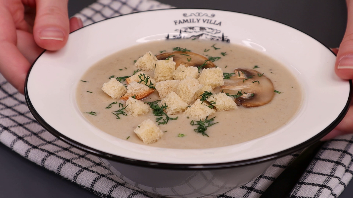 Приготовление нежного грибного супа-пюре с хрустящими сухариками стало настоящим спасением для тех, кто постоянно спешит. Этот рецепт не требует идеальной нарезки ингредиентов и долго варить его тоже не нужно — идеальный вариант для быстрого ужина!