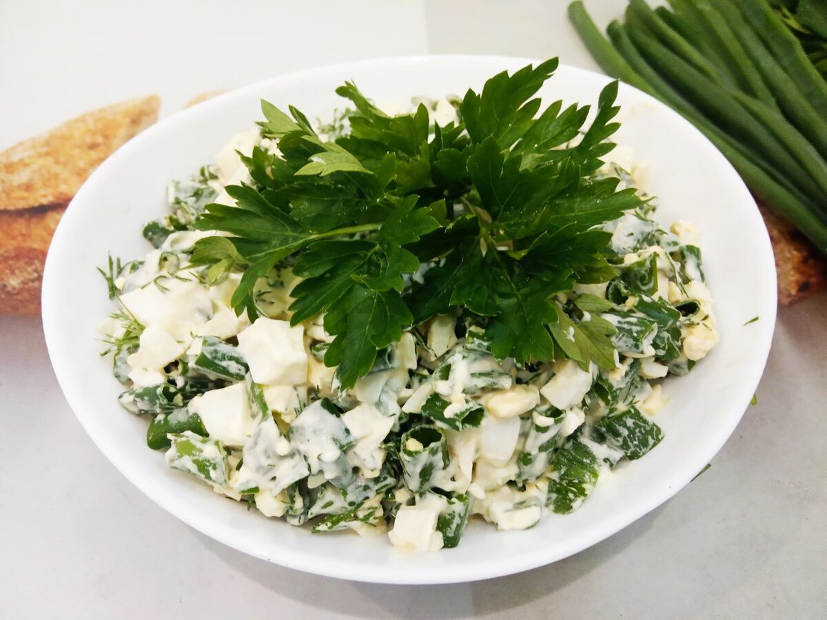 Как приготовить салат с зелёным луком и яйцами