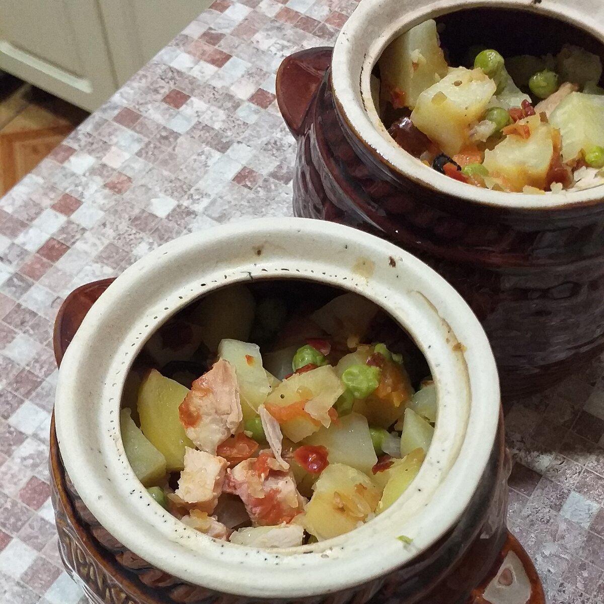 Чтобы поднять привычную картошку в горшочке на новый уровень, стоит заменить обычное мясо на ароматную копчёную курицу. Это блюдо наполнится аппетитным запахом копчения, который идеально дополнит вкус нежного зелёного горошка.