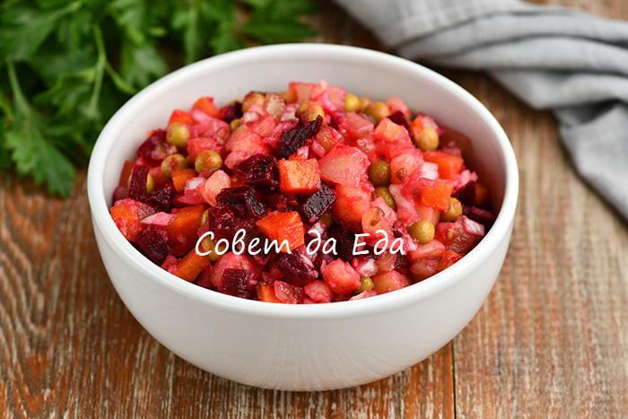 Этот вариант винегрета отличается не только новым вкусом, но и гармонией сладости запеченных овощей и кислинки соленых помидоров. Важно помнить о количестве соленых ингредиентов, чтобы сохранить баланс вкуса: