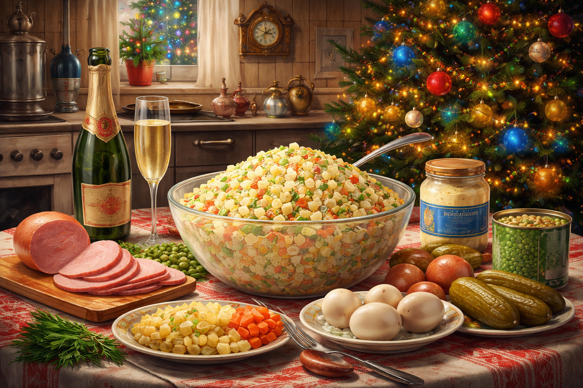 Необходимо ли под Новый год шампанское, ёлка или мандарины? Возможно, но без Оливье в советской квартире праздник потерял бы свою магию, превратившись в нечто бессмысленное. Этот салат стал не только незаменимым атрибутом встречи года, но и настоящим ритуалом, объединившим целые поколения.