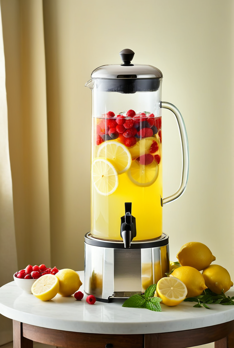 При выборе диспенсера один из ключевых факторов — это его объем. Никто не хочет заканчивать вечер с пустым кувшином. Например, для небольших встреч (до 10 человек) подойдет модель на 3-5 литров, а для более масштабных мероприятий лучше выбирать от 8 до 10 литров. Большой объем не только сэкономит время, но и позволит компилировать напитки с добавлением фруктов и льда.