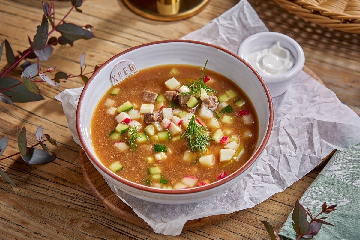 Окрошка на квасе с говядиной – это не просто освежающий летний суп, а настоящая кулинарная симфония, которую оценит каждый гурман. По рецепту известного ресторана «Хлеб насущный» под руководством шеф-повара Евгения Василенко можно быстро и легко приготовить это любимое блюдо.