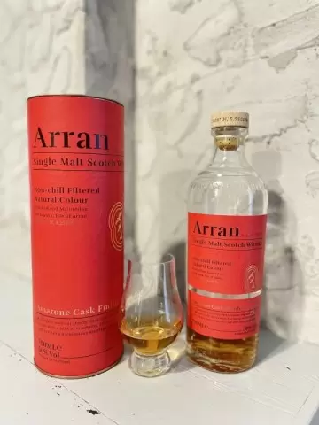 Линейка виски Arran Cask Finish, представленная с 2010 года, пополнилась новым интересным релизом — Amarone. Эта серия включает также Портвейн и Сотерн, представленные ранее. Все экземпляры обладают крепостью 50% abv, а информацию о выдержке можно предположить на основе опыта. Базовый спирт, вероятно, созревает в бочках из-под бурбона около 7-8 лет, после чего его помещают в бочки из-под вина Амароне на 9-24 месяца.