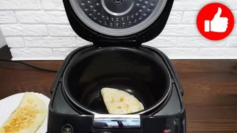 2. Включить мультиварку в режим «Жарка», добавив немного масла. Дождаться, пока масло нагреется, и вылить в чашу одно яйцо. Сверху аккуратно положить лепёшку и обжаривать в течение 2 минут.