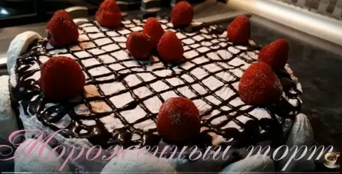 Поместите форму в морозильник на два часа. После этого торт можно оформить по вашему усмотрению: посыпьте его шоколадом, украсьте клубникой или оставшимся безе. Когда десерт застынет, нарежьте его как обычный торт или порционно, как пирожные. Наслаждайтесь непревзойденным вкусом вашего творения!