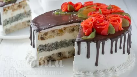 Соберите торт, чередуя коржи и крем. Обязательно дайте ему настояться в холодильнике минимум на 6 часов.