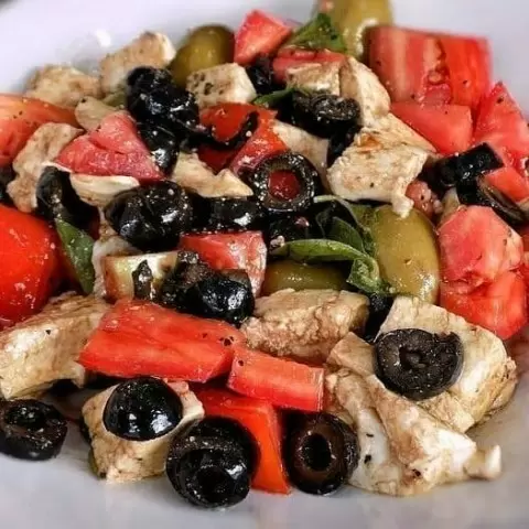 Приступим к кулинарному волшебству! Для начала отварную куриную грудку и спелые помидоры необходимо нарезать кубиками. Оливки и маслины легко нарезаются кружочками. Все ингредиенты аккуратно смешиваются в глубокой миске. После этого добавляется измельченная зелень по вашему выбору – это придаст салату аромат и свежесть.